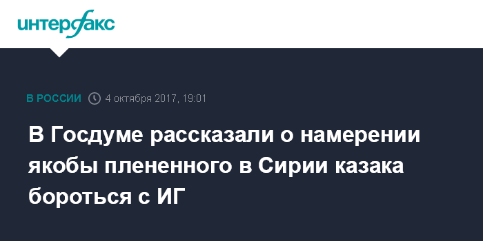 В Госдуме рассказали о намерении якобы плененного в Сирии казака бороться с ИГ