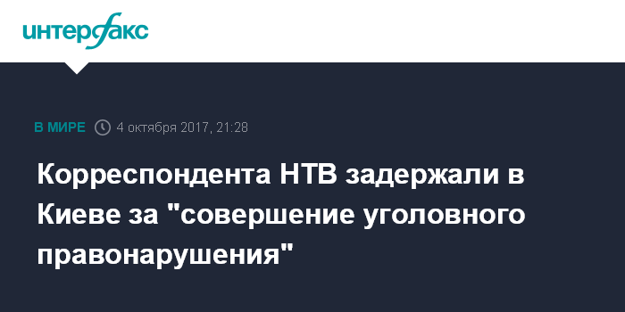 Москва. 4 октября. INTERFAX.RU - В Нацполиции Украины объяснили задержание в Киеве корреспондента телепрограммы "Центральное телевидение" телеканала НТВ Вячеслава Немышева совершением им правонарушения.