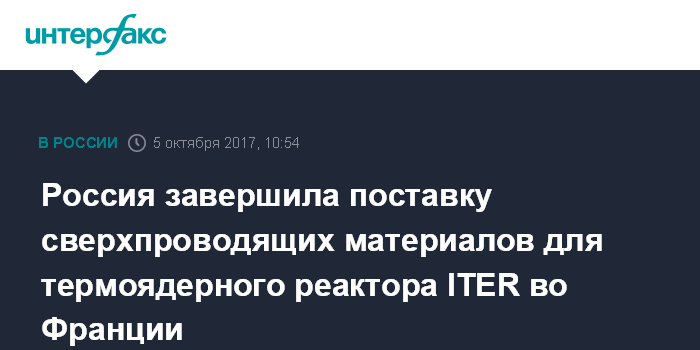 "На сегодня Россия полностью выполнила свои обязательства по поставке сверхпроводящих материалов, причем я должен сказать, что наши сверхпроводящие материалы признаны лучшими в мире. В ITER есть такие сложные места, где магнитные системы работают в более трудных условиях, так вот, для этих мест выбран российский сверхпроводник", - сказал он.
