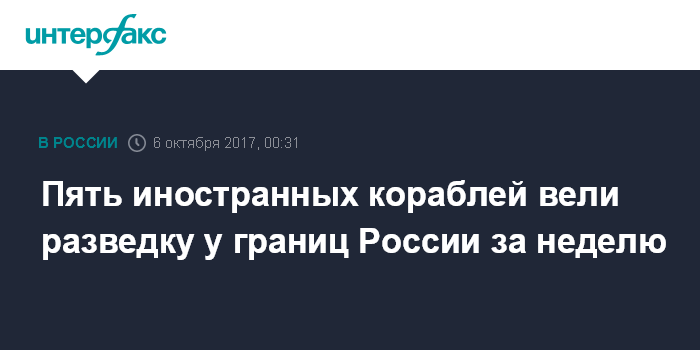По данным российских военных, пять иностранных кораблей в течение недели вели разведку вдоль морских границ России.