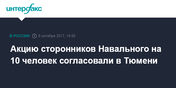 В свою очередь, власти Тюмени не согласовали проведение 7 октября пикета в центре города в поддержку Навального, сообщили агентству в администрации города. Волонтер тюменского штаба Навального сообщил агентству "Интерфакс", что активисты обратились в суд, чтобы оспорить это решение городской администрации. По его словам, 7 октября в городе планируется провести одиночные пикеты.