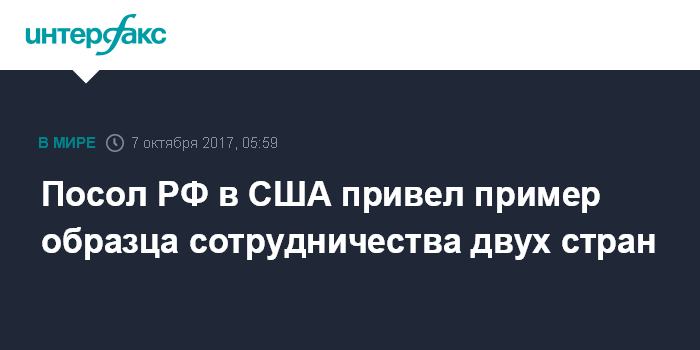 Посол РФ в США привел пример образца сотрудничества двух стран