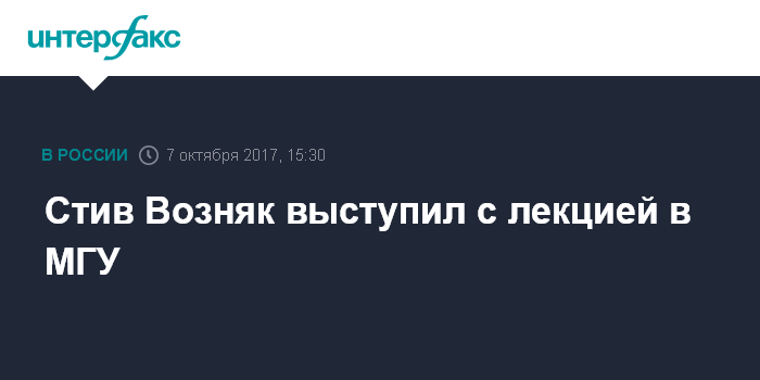 Москва. 7 октября. INTERFAX.RU - Сооснователь компании Apple, филантроп и технологический визионер Стив Возняк в субботу выступил с лекцией в МГУ имени Ломоносова.