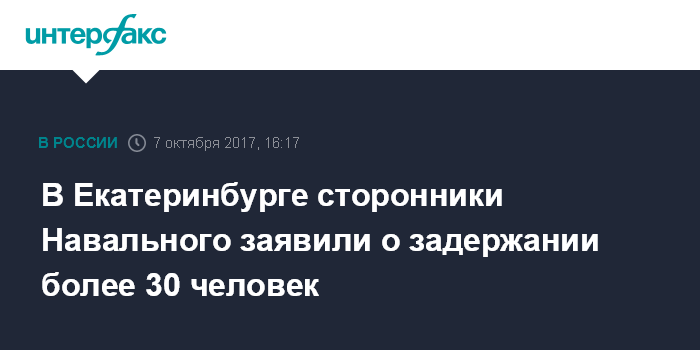 "Задержаны более 30 человек, всех сейчас оформляют в автозаках, стоящих на Площади труда, где проходил пикет", - сказал "Интерфаксу" в субботу координатор штаба Навального в Екатеринбурге Виктор Бармин, уточнив, что сам находится в числе задержанных.
