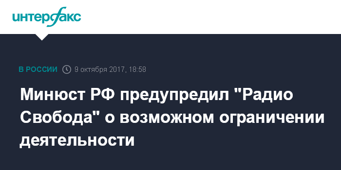 Минюст РФ предупредил "Радио Свобода" о возможном ограничении деятельности