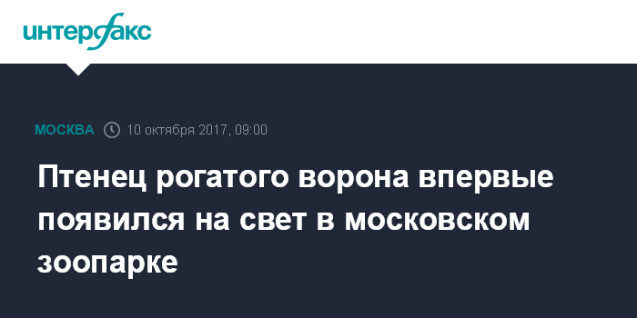 Москва. 10 октября. INTERFAX.RU - Птенец кафрского рогатого ворона вылупился в Московском зоопарке, его можно увидеть в "Доме птиц" на старой территории, сообщается на официальном портале столичной мэрии.