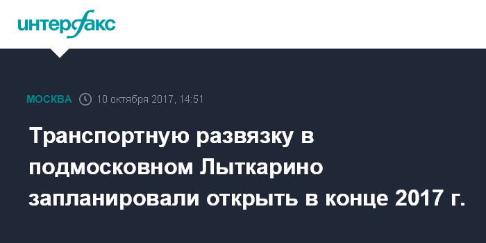 Транспортную развязку в подмосковном Лыткарино запланировали открыть в конце 2017 г.