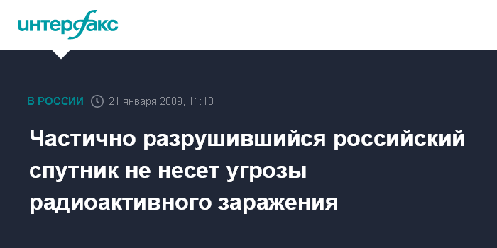 Частично разрушившийся российский спутник не несет угрозы радиоактивного заражения