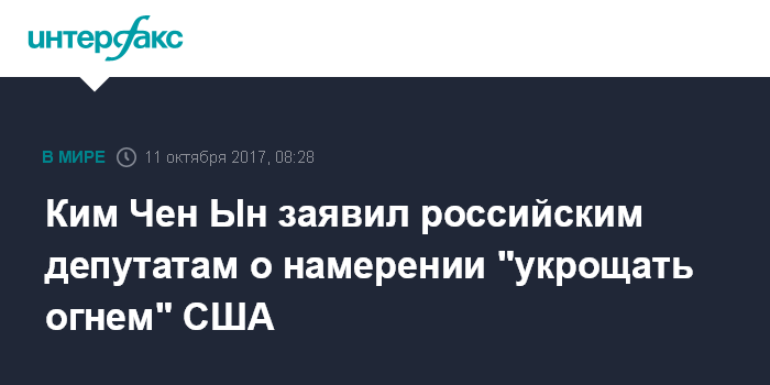 Ким Чен Ын заявил российским депутатам о намерении "укрощать огнем" США