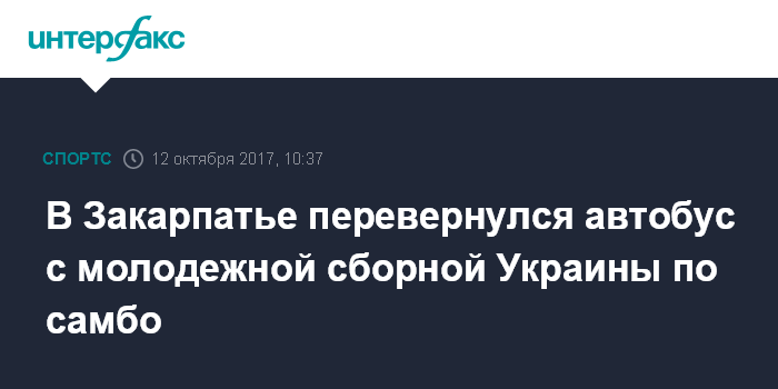 Москва. 12 октября. INTERFAX.RU - Автобус с молодежной сборной Украины по самбо, ехавшей на чемпионат мира в Сербию, перевернулся в среду вечером в Закарпатской области.