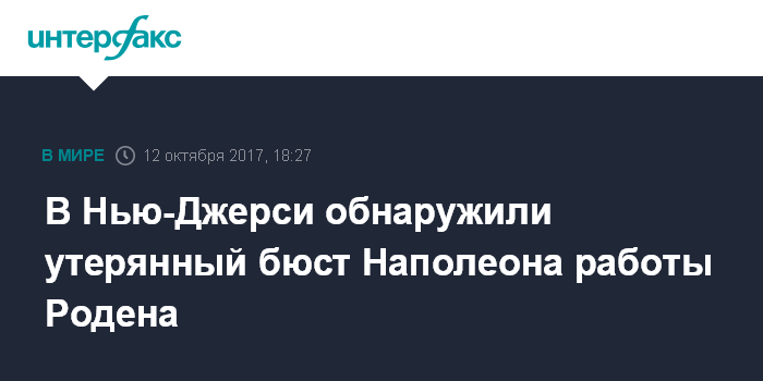 Москва. 12 октября. INTERFAX.RU - В городе Мэдисон в штате Нью-Джерси обнаружили считавшийся 85 лет утерянным бюст Наполеона, созданный французским скульптором Огюстом Роденом, сообщает в четверг агентство AP.