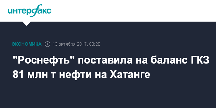 "Роснефть" поставила на баланс ГКЗ 81 млн т нефти на Хатанге
