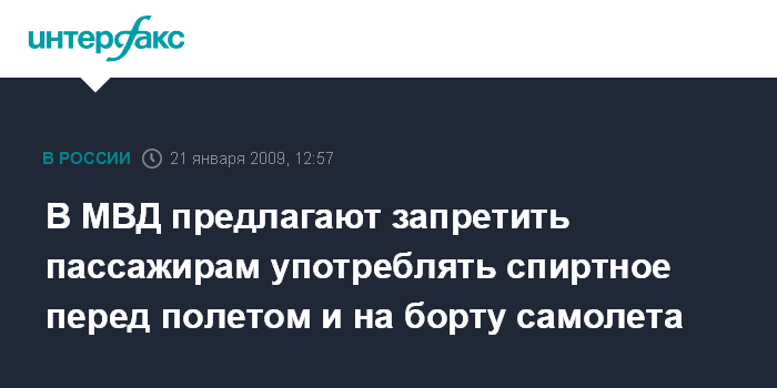 В МВД предлагают запретить пассажирам употреблять спиртное перед полетом и на борту самолета