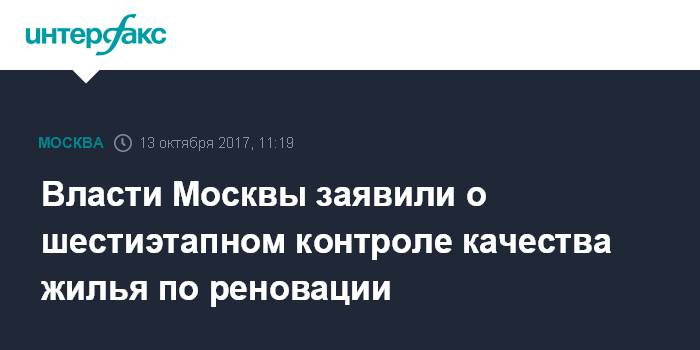 Власти Москвы заявили о шестиэтапном контроле качества жилья по реновации