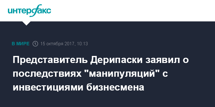Представитель Дерипаски заявил о последствиях "манипуляций" с инвестициями бизнесмена