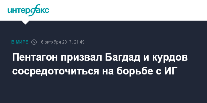 Пентагон призвал Багдад и курдов сосредоточиться на борьбе с ИГ