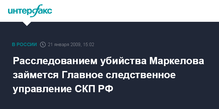 Расследованием убийства Маркелова займется Главное следственное управление СКП РФ