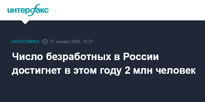 Горки. 21 января. INTERFAX.RU - Минздравсоцразвития РФ прогнозирует, что количество безработных в России в нынешнем году составит порядка двух миллионов человек, сообщила глава ведомства Татьяна Голикова на совещании президента РФ Дмитрия Медведева с полпредами в федеральных округах.