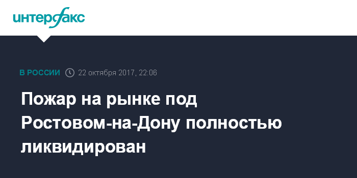 Москва. 22 октября. INTERFAX.RU - Пожарные полностью ликвидировали возгорание на хозяйственном рынке в Аксайском районе Ростовской области, сообщили агентству "Интерфакс" в пресс-службе ГУ МЧС России по региону.