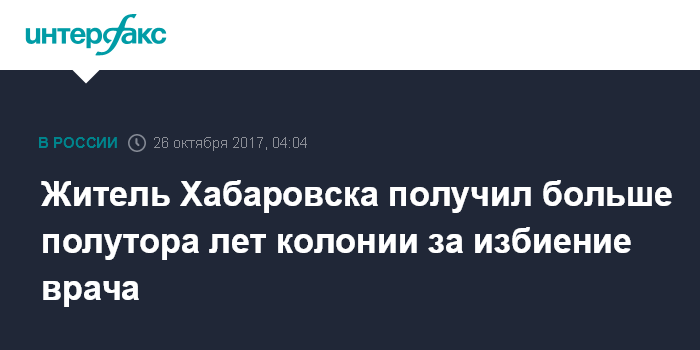 Житель Хабаровска получил больше полутора лет колонии за избиение врача