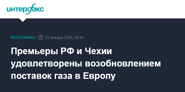 Премьеры РФ и Чехии удовлетворены возобновлением поставок газа в Европу