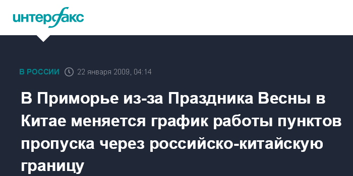 Владивосток. 22 января. ИНТЕРФАКС-ДАЛЬНИЙ ВОСТОК - Автомобильные пункты пропуска на российско-китайской границе в Приморье на период празднования в КНР нового года по лунному календарю (Праздника Весны) меняют режим работы.