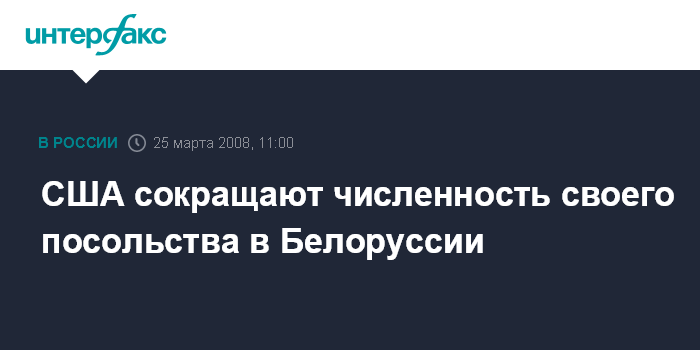 Минск. 25 марта. INTERFAX.RU - США сокращают численность своего посольства в Минске по требованию белорусских властей, говорится в заявлении Временного поверенного в делах США в Белоруссии Джонатана Мура.