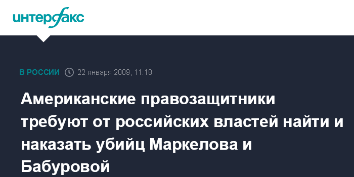 Американские правозащитники требуют от российских властей найти и наказать убийц Маркелова и Бабуровой