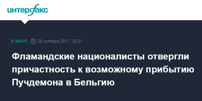 Москва. 30 октября. INTERFAX.RU - В националистической партии "Новый фламандский альянс" (N-VA) опровергают переданные в понедельник сообщения испанских и бельгийских СМИ о том, что бывший глава женералитата Каталонии Карлес Пучдемон прибыл в Брюссель якобы по ее приглашению.