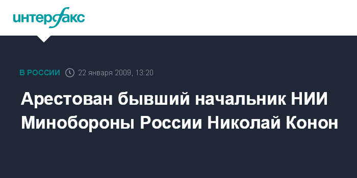 Москва. 22 января. INTERFAX.RU - Генерал-майор запаса, бывший начальник НИИ Минобороны России Николай Конон взят под стражу по ходатайству Главной военной прокуратуры.