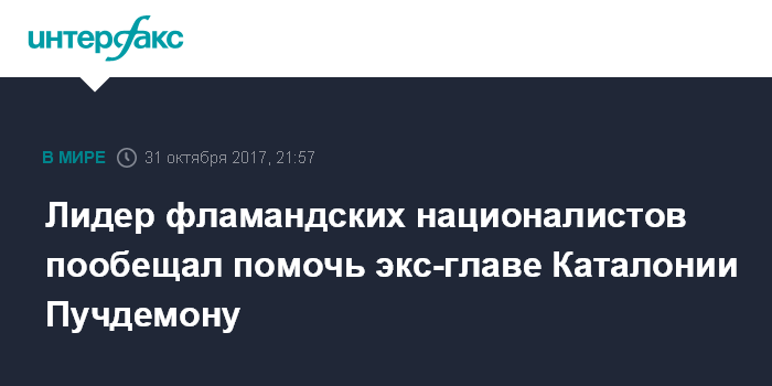 "Карлес Пучдемон - друг и всегда будет желанным гостем", - сказал лидер фламандских националистов во вторник в интервью телеканалу VTM после состоявшейся в Брюсселе пресс-конференции отстраненного от власти каталонского лидера.