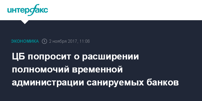 ЦБ попросит о расширении полномочий временной администрации санируемых банков