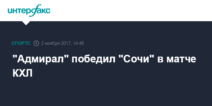 Москва. 2 ноября. INTERFAX.RU - Владивостокский "Адмирал" на домашнем льду уверено переиграл "Сочи" в домашнем матче регулярного чемпионата Континентальной хоккейной лиги (КХЛ).
