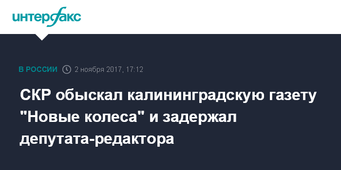СКР обыскал калининградскую газету "Новые колеса" и задержал депутата-редактора