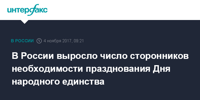 Между тем доля тех, кто считает, что такой праздник как День народного единства нужен в России, выросла до 78% с 45% в 2005 году. Противоположного мнения придерживаются 14% респондентов (36% в 2005 году).