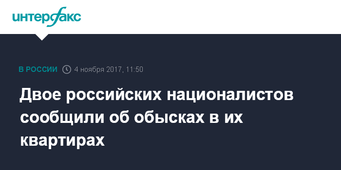 Москва. 4 ноября. INTERFAX.RU - Националисты Иван Белецкий и Юрий Горский сообщили, что сотрудники правоохранительных органов утром в субботу провели обыски у них в домах.