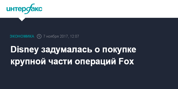 По их данным, Disney предлагала 21st Century Fox обсудить возможность продажи кабельных телеканалов, включая FX и National Geographic Channel, киностудии 21st Century Fox, а также зарубежных операций по распространению контента.