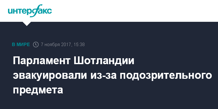 Москва. 7 ноября. INTERFAX.RU - Из здания парламента Шотландии эвакуировали людей после того, как в одном из помещений была обнаружена подозрительная упаковка, сообщает во вторник The Independant.