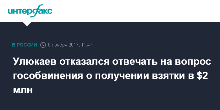 Москва. 8 ноября. INTERFAX.RU - Бывший министр экономического развития РФ Алексей Улюкаев отказался отвечать на вопрос прокурора, получал ли он $2 млн 14 ноября 2016 года.