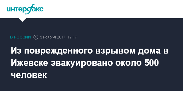 Москва. 9 ноября. INTERFAX.RU - Из частично обрушившегося в результате взрыва жилого 9-этажного дома в Ижевске эвакуировано около 500 человек, сообщил глава Удмуртии Александр Бречалов.
