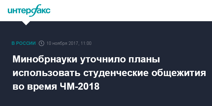Ранее "Коммерсантъ" сообщил, что "российским студентам грозит массовое выселение из общежитий в связи с проведением чемпионата мира по футболу-2018".