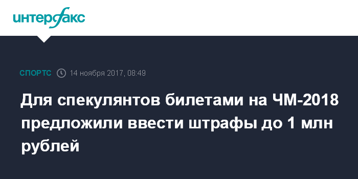 Для спекулянтов билетами на ЧМ-2018 предложили ввести штрафы до 1 млн рублей
