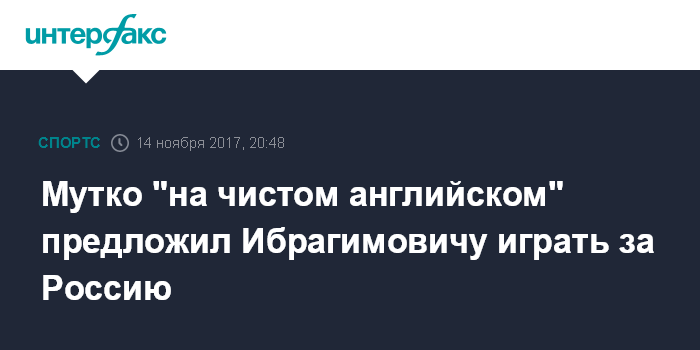 Москва. 14 ноября. INTERFAX.RU - Вице-премьер Виталий Мутко в шутку предложил шведскому футболисту Златану Ибрагимович выступить на чемпионате мира по футболу за Россию.