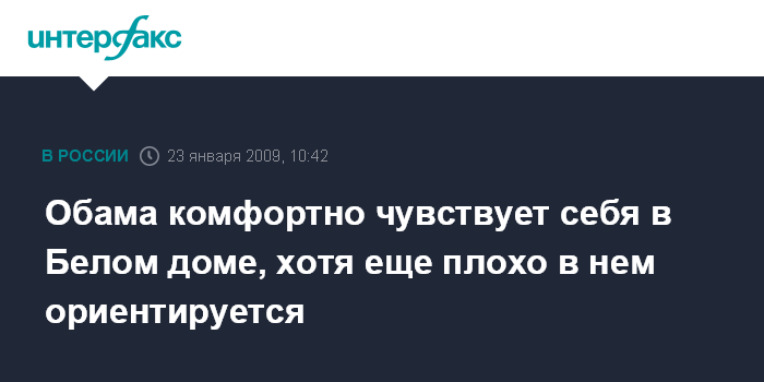 Москва. 23 января. INTERFAX.RU - Президент США Барак Обама доволен, что теперь живет в Белом доме и чувствует себя там вполне комфортно, сообщил представитель главы государства Роберт Гиббс.