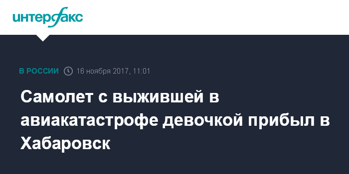 Самолет с выжившей в авиакатастрофе девочкой прибыл в Хабаровск