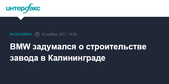 Москва. 16 ноября. INTERFAX.RU - Немецкий автоконцерн BMW в первой половине 2018 года может принять решение о строительстве завода в Калининграде, сообщил журналистам генеральный директор российского подразделения концерна Максимилиан Келльнер.