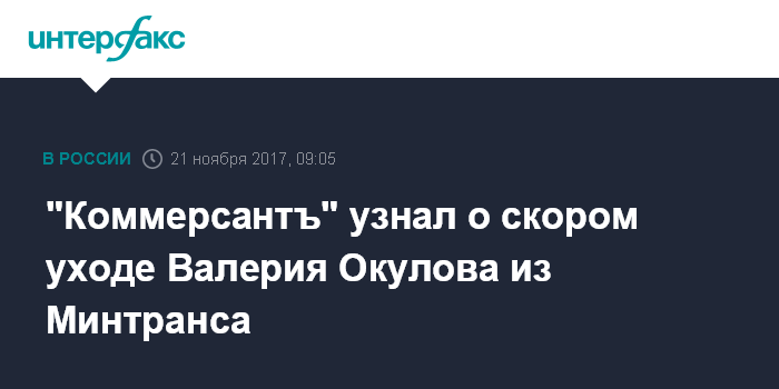 "Коммерсантъ" узнал о скором уходе Валерия Окулова из Минтранса