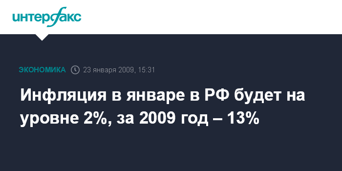 Инфляция в январе в РФ будет на уровне 2%, за 2009 год – 13%