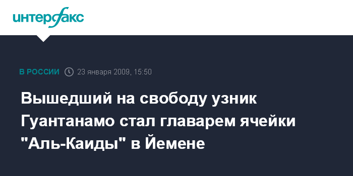 Москва. 23 января. INTERFAX.RU - Бывший узник центра задержаний на военной базе США в Гуантанамо, оказавшись на свободе, стал лидером ячейки террористической группировки "Аль-Каида" в Йемене, пишет в пятницу американская газета New York Times.