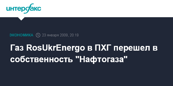 Киев. 23 января. INTERFAX.RU - Находящийся в украинских хранилищах газ швейцарского трейдера RosUkrEnergo (RUE) перешел в собственность НАК "Нафтогаз Украины", сообщил министр топлива и энергетики Украины Юрий Продан.